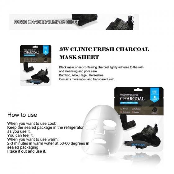 - Mặt nạ than hoạt tính 3W Clinic Fresh Charcoal chiết xuất từ bột than hoạt tính kết cấu rỗng làm sạch sâu bã nhờn cùng lượng dầu dư thừa, ngăn chặn sự hình thành mụn cám, mụn đầu đen, mang đến cho bạn làn da chắc khỏe từ bên trong.