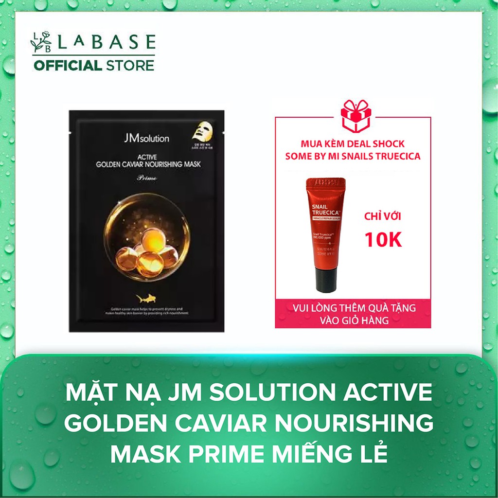 Mặt nạ JM Solution Active Golden Caviar Nourishing Mask Prime Miếng lẻ - Vàng 24K Trứng Cá Tầm JM Gold Caviar Mask với chiết xuất vàng và viên nang tan chảy trên da của bạn một cách nhẹ nhàng cung cấp dưỡng chất phong phú - Chiết xuất Caviar - kích hoạt sản xuất collagen, số lượng giảm dần theo tuổi tác, phục hồi độ đàn hồi và độ săn chắc của da. Bổ sung độ ẩm cho da mềm mịn, căng bóng, Cải thiện độ săn chắc và đàn hồi của da, Duy trì mức độ hydrat hóa tối ưu trong các tế bào da.