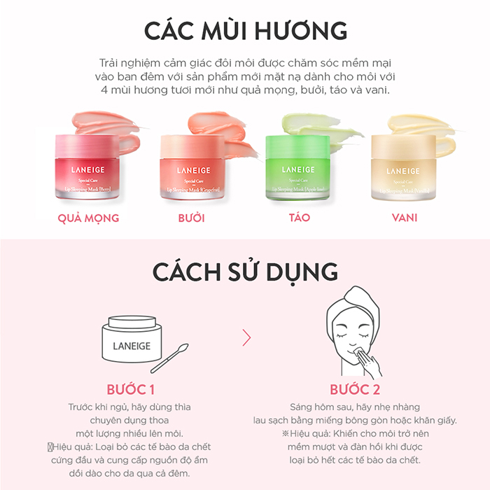 - Mùi hương vani ngọt ngào như các loại kem bao bọc đôi môi trong lúc ngủ.