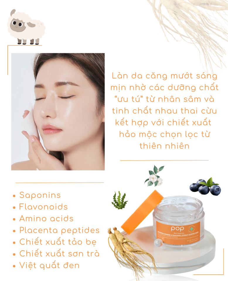Giới thiệu Mặt Nạ Ngủ Tinh Chất Nhau Thai Cừu Và Nhân Sâm POP