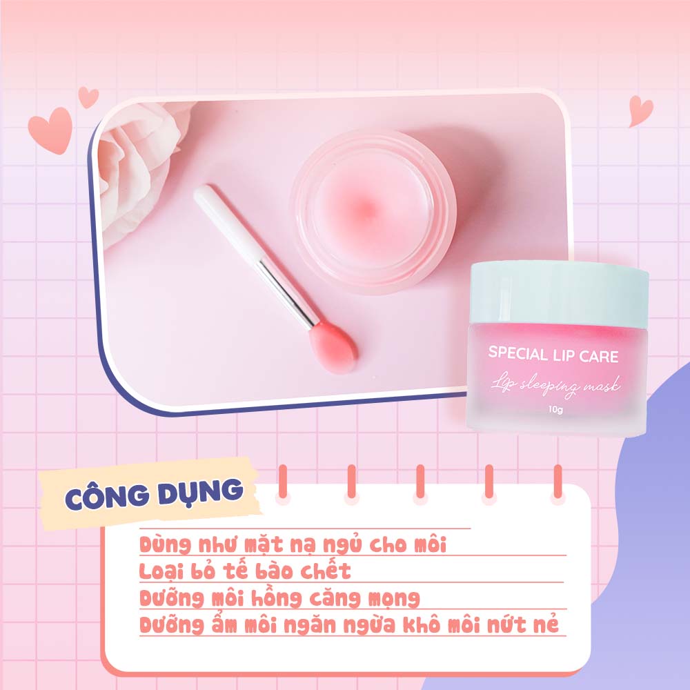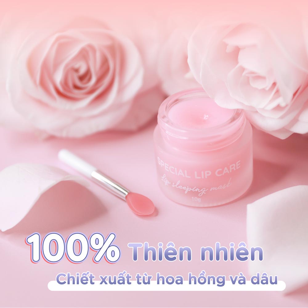 Mặt nạ ngủ cho môi - Ủ môi hoa hồng giảm những vấn đề môi khô nẻ, nứt môi, những đường vân môi.