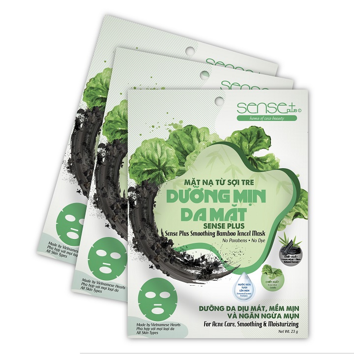 Mặt nạ từ sợi tre dưỡng mịn da mặt Sense Plus được sản xuất từ nước dừa tươi lên men tự nhiên. Mặt nạ được làm từ 100% sợi tre tự nhiên với kết cấu mềm mại, thấm hút dưỡng chất nhiều hơn và ôm sát vào da, chiết xuất từ các nguyên liệu thiên nhiên, được tin tưởng sử dụng trong các liệu trình giảm mụn, ngăn ngừa quá trình hình thành nhân mụn, dưỡng mát da, với các ưu điểm sau:
