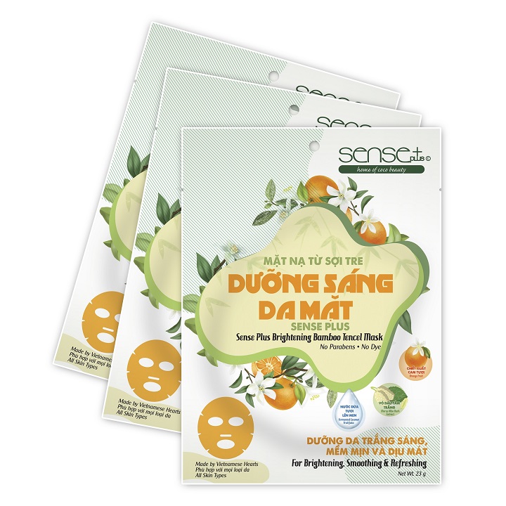 Mặt nạ từ sợi tre dưỡng sáng da mặt Sense Plus được sản xuất từ nước dừa tươi lên men. Mặt nạ được làm từ 100% sợi tre tự nhiên với kết cấu mềm mại, thấm hút dưỡng chất nhiều hơn và ôm trọn làn da, chiết xuất từ các nguyên liệu thiên nhiên, được ưu ái trong liệu trình dưỡng sáng, hỗ trợ dưỡng trắng sáng, giúp da đều màu, dưỡng ẩm và làm mát dịu da, với các ưu điểm khó có thể từ chối: