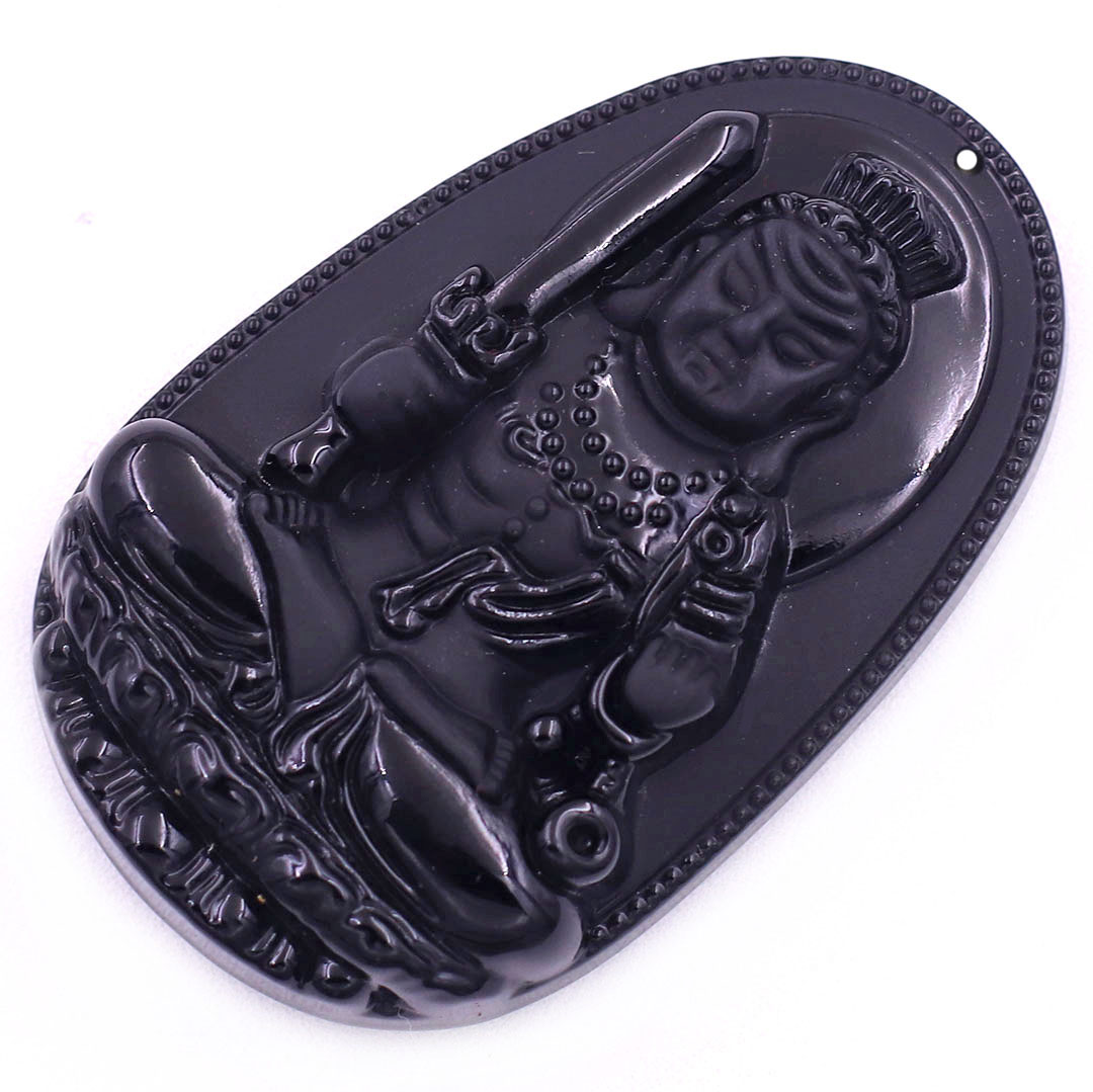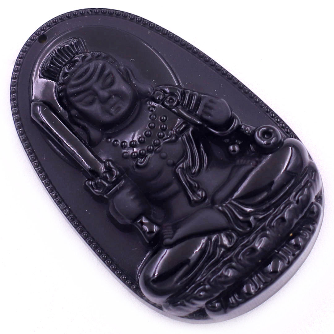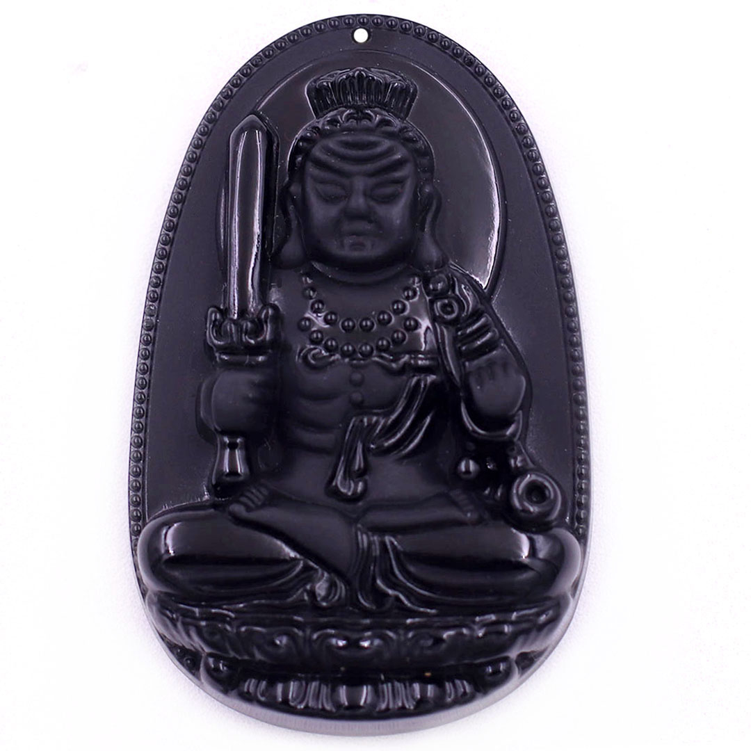 Thông tin sản phẩm: Mặt Phật Bất động minh vương đá thạch anh đen kèm vòng cổ dây dù đen + móc inox trắng, mặt dây chuyền Phật bản mệnh, vòng cổ mặt Phật