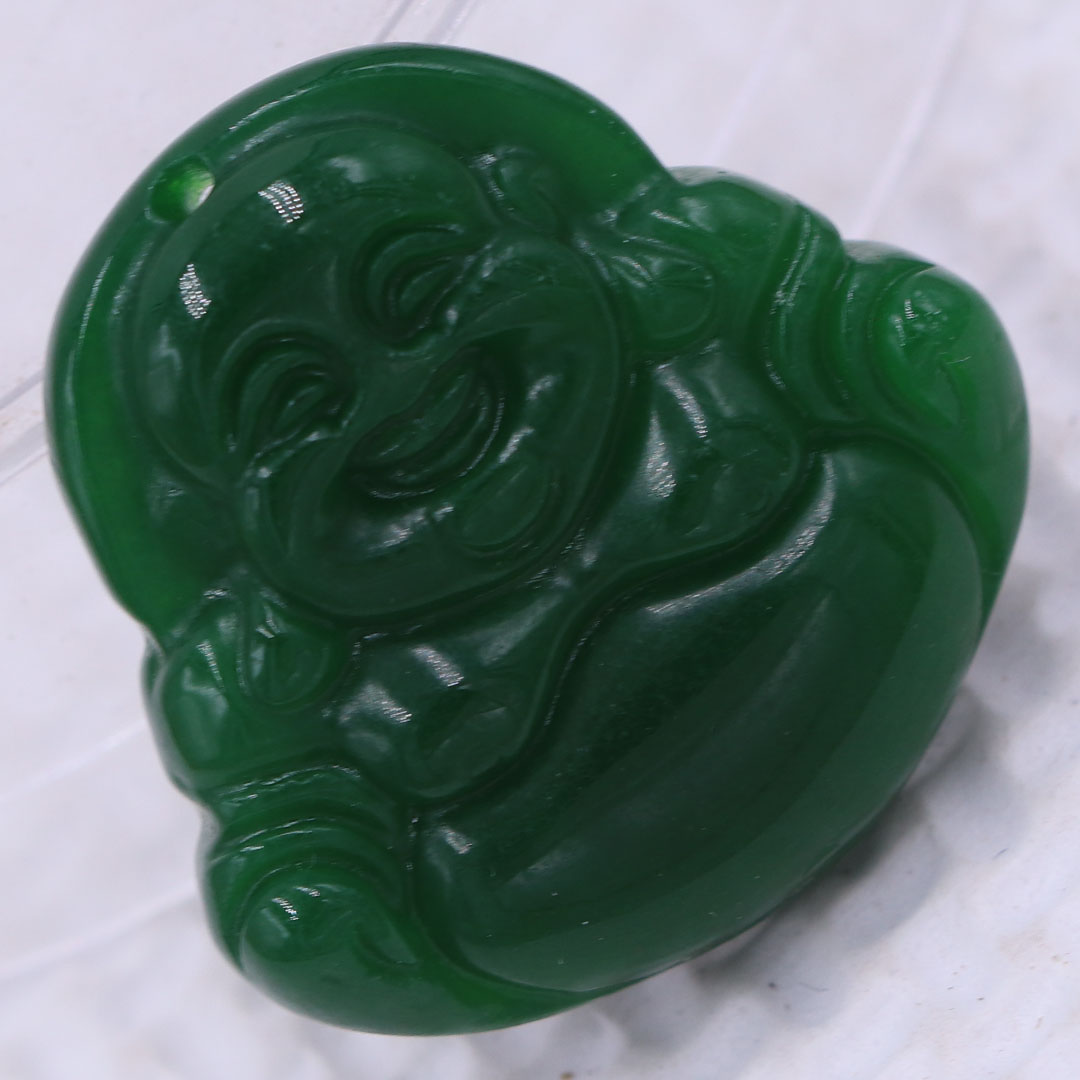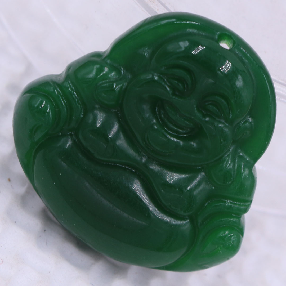 Thông tin sản phẩm: Mặt Phật Di lặc mã não xanh lá 2.9 cm kèm móc inox trắng, mặt dây chuyền Phật cười