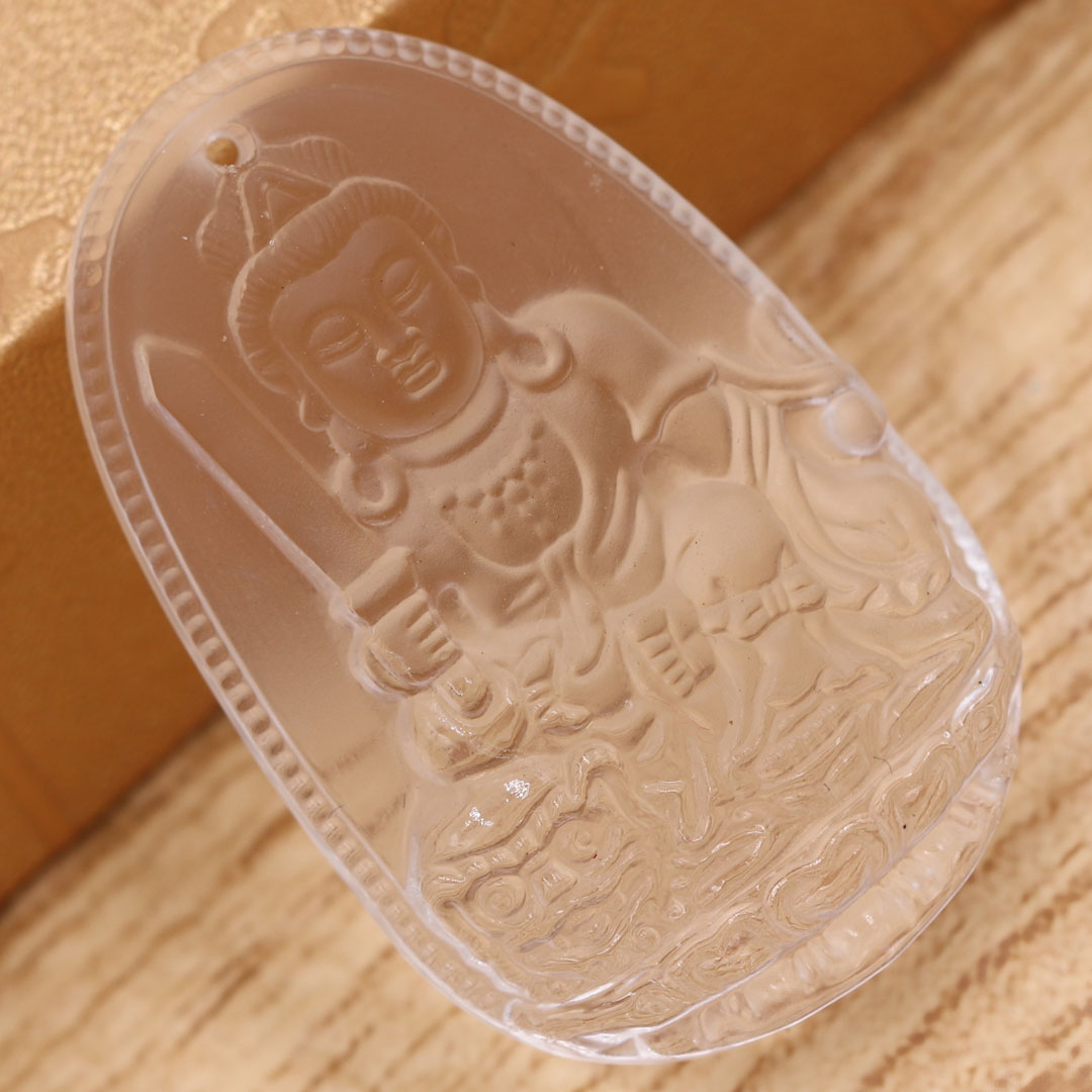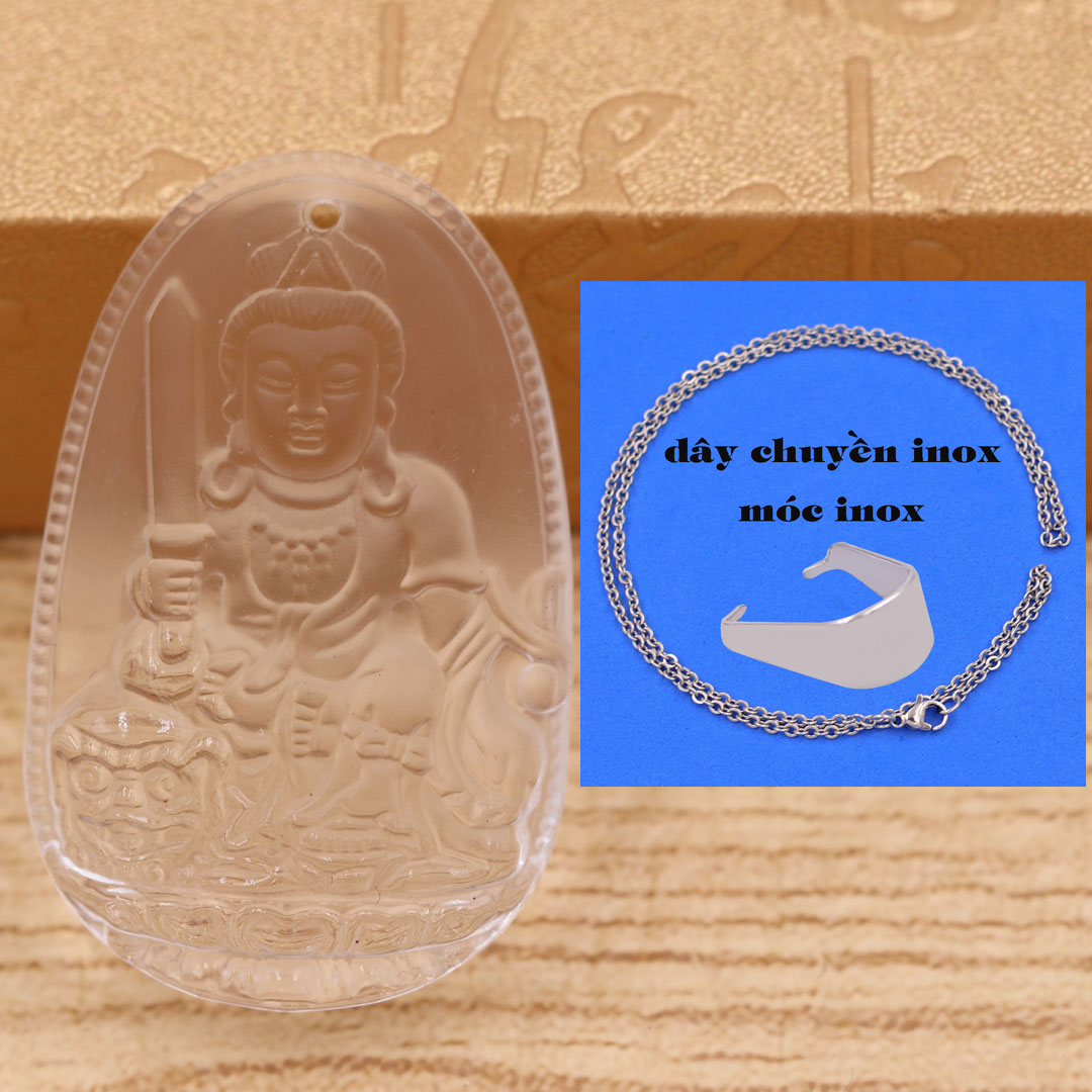 Thông tin sản phẩm: Mặt Phật Văn thù 5 cm (size XL) pha lê trắng kèm móc và dây chuyền inox, Mặt Phật bản mệnh