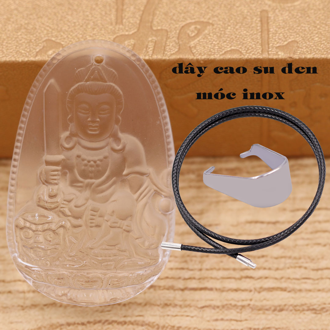 Thông tin sản phẩm: Mặt Phật Văn thù pha lê trắng 3.6 cm kèm móc và vòng cổ dây cao su đen, Mặt Phật bản mệnh
