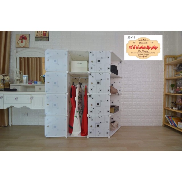 ☘️TỦ 8 ô kèm 4 ô góc để đồ lắp hoàn thiện: cao 150cm x rộng 110cm x sâu 47cm. Chi tiết phụ kiện tủ nhựa ghép đa năng . Tấm thân 35*45cm: 22 Tấm lưng 35*35 cm: 12 Cánh cửa 35*35 cm: 8 Tấm vát: 5 Chốt : 38 cái Nam châm : 16 cái Thanh treo : 1 cái Búa gỗ : 1 cái Giấy hướng dẫn lắp tủ : 1 tờ ưu điểm của tủ nhựa ghép đa năng : Chất liệu nhựa PP( Polypropylen) an toàn thân thiện với môi trường Khoang để đồ bố trí linh hoạt tháo lắp dễ dàng Sức chứa lớn mỗi ô tủ chịu được trọng lượng 12kg Mẫu mã đa dạng phong phú, màu sắc tươi mới Đặc biệt khách hàng có tyhể tùy ý lựa trọn màu sắc,số ô và lựa trọn cửa tủ như mong muốn. Chất liệu tủ nhựa ghép đa năng Tủ được làm từ tấm nhựa PP ( Polypropylen) an toàn với môi trường. Tấm nhựa có độ dày 0.3-0.4mm,xung quanh được gia cố bằng khung thép có sơn tĩnh điện, đường kính khung thép là 4mm. Các khung thép liên kết với nhau qua những chốt nhựa rất chắc chắn. Chốt nhựa làm từ ABS ( Acrylonitrile Butadiene Styrene copolymers)vô cùng dẻo dai và bền bỉ. Thanh treo được làm bằng thép và được sơn tĩnh điện. Nam châm được gắn vào vị trí mép cửa tủ để làm nhiệm vụ giữ cánh tủ nhà bạn không bị hở khi đóng lại.