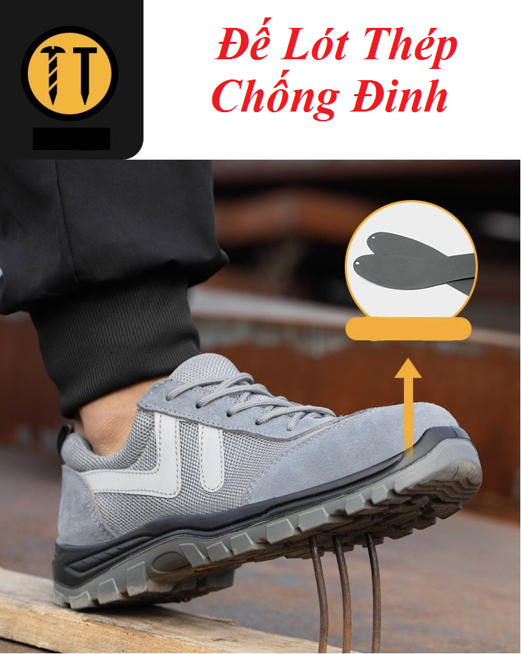 - Chống đâm xuyên: đế giày làm bằng lót thép chống đinh, chống đâm xuyên