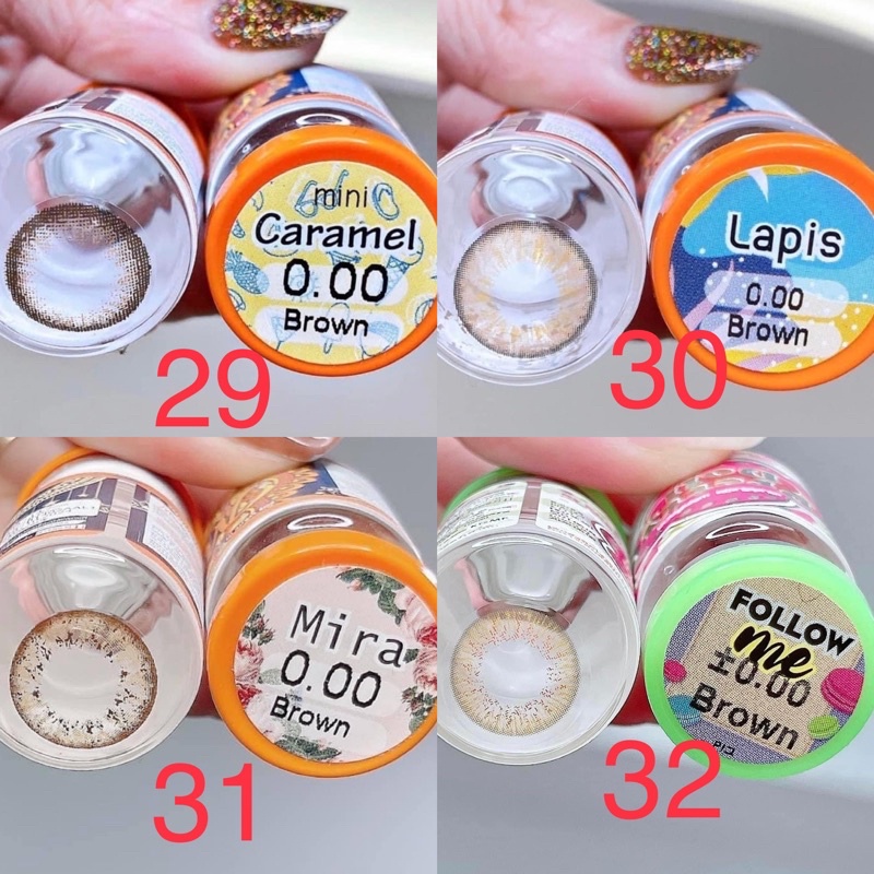 Lens chỉ kèm khay đơn ạ. Khay gương có dụng cụ đeo mua riêng giúp shop nha . Date xa 2023-2024-2025 tuỳ lens Các mẫu lens Nâu size giãn ít 14,2mm- không độ ( có độ chọn ở mục riêng dành cho có độ giúp shop ạ, các mẫu này chỉ có không độ, có đô ở mục khác) Made in Korea -lens Thái sản xuất ở Hàn với các hãng sweety, wink, kitty kawaii, lolliop, pretty doll, pitchy ,lovely,luxizy, montra, candy,dream,... HSD: 6 tháng kể từ ngày khui lens ( nếu không khui để được lâu ạ, date xa) Có thể tìm hiểu thêm thông tin tại: Page FB: Sam Eyes- Contact lens Korea Zalo- Sdt liên hệ :0377 115 166 dc: 944/11 Huỳnh Tấn Phát phường Tân Phú q7 Chú ý: Khi nhận hàng kiểm tra kĩ lens soi đèn flash vào đáy lọ kiểm tra hàng nguyên vẹn thì sử dụng, nếu rách vui lòng không khui mà liên hệ ngay với shop vì hàng rách hay xước chỉ nhận đổi tra trước khi khui, khui rồi shop không biết được là do rách sẵn hay do khách làm đâu ạ-shop chỉ nhận đổi trả khi chưa khui lens , lens khui rồi không nhận đổi trả . Chỉ nhận đổi lens lỗi- cộm- đổi cùng mẫu y hệt, không nhận đổi khác mẫu vì không thích, hay không hợp, hay đeo không vừa, không ưng ý..... vậy nên nhớ lựa chọn thật kĩ trước khi đặt hàng .cần tư vấn size phù hợp với mắt cứ ib hỏi shop ạ.