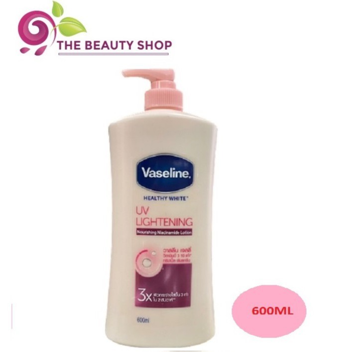 Sữa dưỡng thể Vaseline trắng da tổng hợp nhiều loại Vitamin và độ ẩm. Vaseline Healthy White UV Lightening 570ml bổ sung 100% chất ẩm và cung cấp chất dinh dưỡng cần thiết như Vitamin A, E, B và khoáng chất, bạn sẽ cảm thấy làn da khỏe khoắn mỗi ngày. Dưỡng thể Vaseline cung cấp cho bạn độ ẩm dưỡng da giúp da luôn mềm mại, mịn màng và dẻo da. Dòng dưỡng thể Vaseline xuất xứ từ Mỹ này là sản phẩm đang có sức bán tốt nhất trên thị trường sữa dưỡng thể Việt Nam hiện nay. Thiết kế đẹp mắt với chai dưỡng thể Vaseline hồng Tigon xinh xắn là biểu tượng cho sự trắng hồng rạng rỡ mà Vaseline hứa hẹn mang lại sự rạng rỡ cho làn da của bạn. Chứa những thành phần khoán chất là trắng sáng da toàn diện như huyết thanh chiết xuất từ Yaourt & Vitamin B3. Những dưỡng chất này cung cấp đủ độ ẩm cần thiết cho da sáng khỏe hơn. Và là một hàng rào bảo vệ giúp da chống lại ánh nắng mặt trời hiệu quả. Chất kem dưỡng thể màu hồng mà shop chưa từng thấy xuất hiện trong bất kỳ sản phẩm nào trước đây cùng với hương thơm cực kỳ quyến rũ của chút hoa & chút chắc chắn sẽ khiến cơ thể bạn tỏa hương. Có thể sử dụng sản phẩm sữa dưỡng thể vaseline ngày 2 lần để tăng khả năng dưỡng trắng da nhanh.