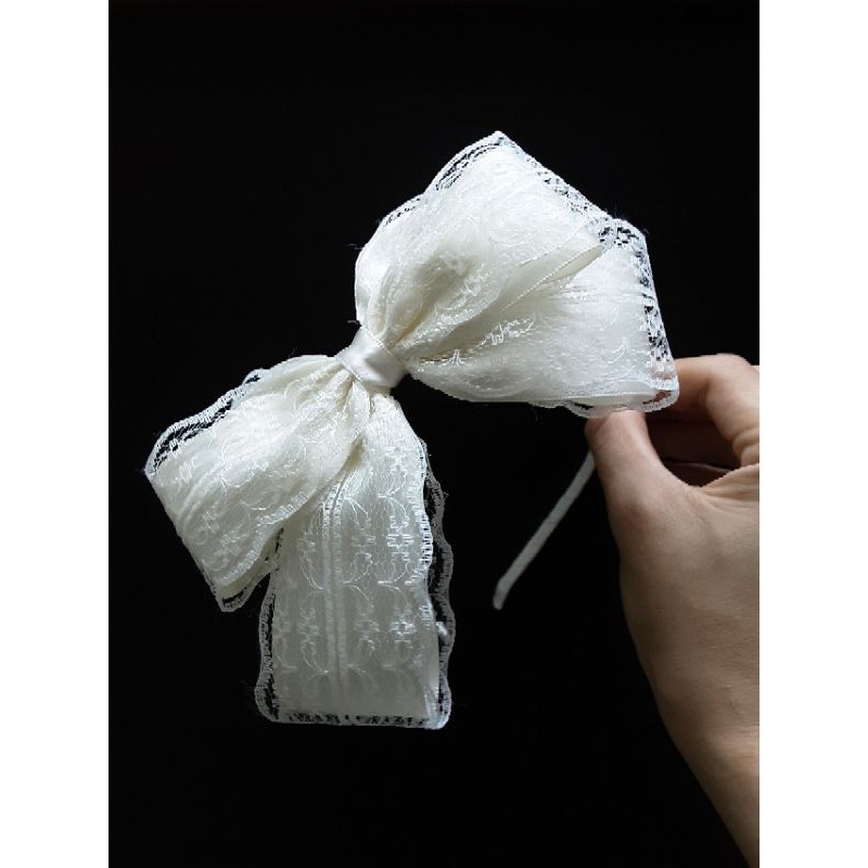 🎀🎀 Cài tóc ren lồng lụa trắng làm nổi vân ren khi đeo rất xinh!