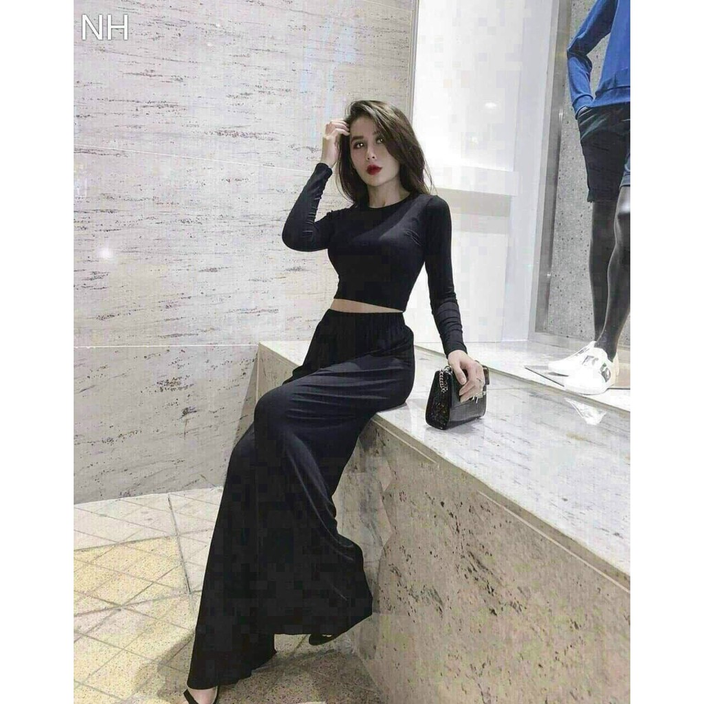 Giới thiệu [MẪU MỚI]SET bộ thể thao thiết kế áo tay dài cổ tròn kết hợp quần ống loe sành điệu SOPHIA