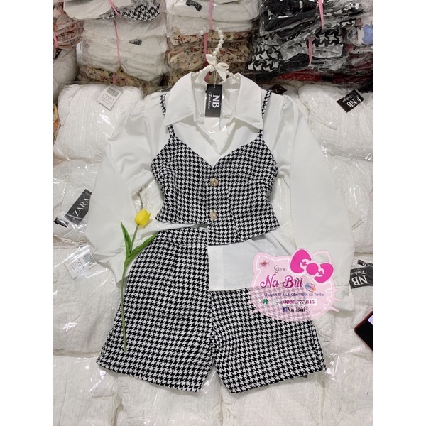 set dạ 3 món( áo sơ mi trắng + quần+ áo khoác khỉ) free size, quần có dây kéo và bo thun, áo sơ mi lụa