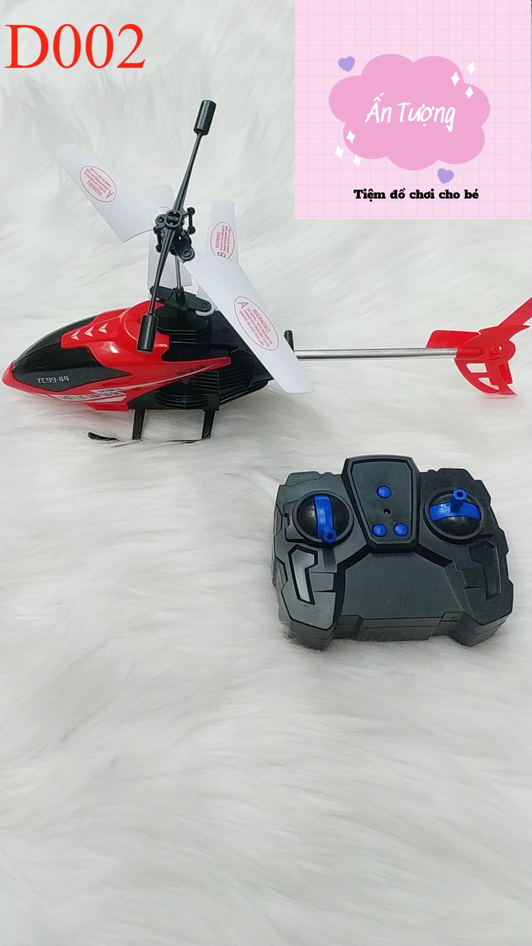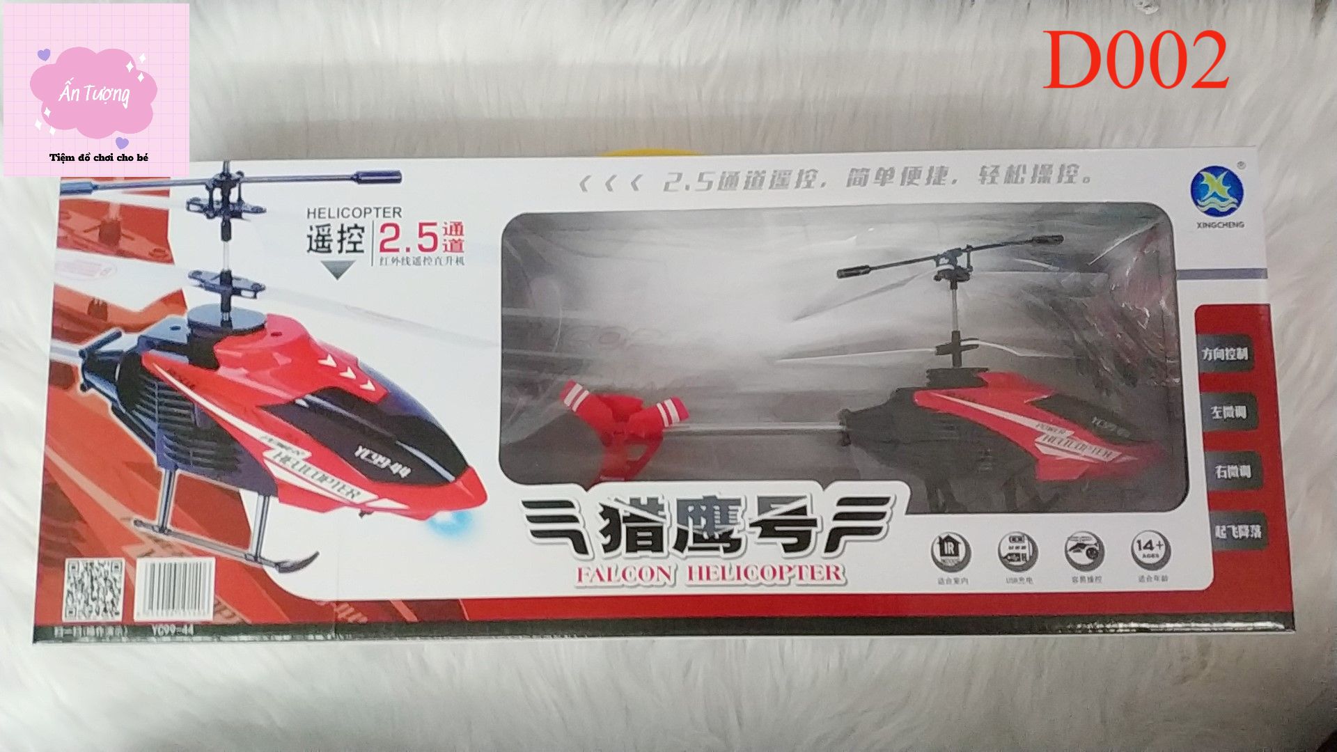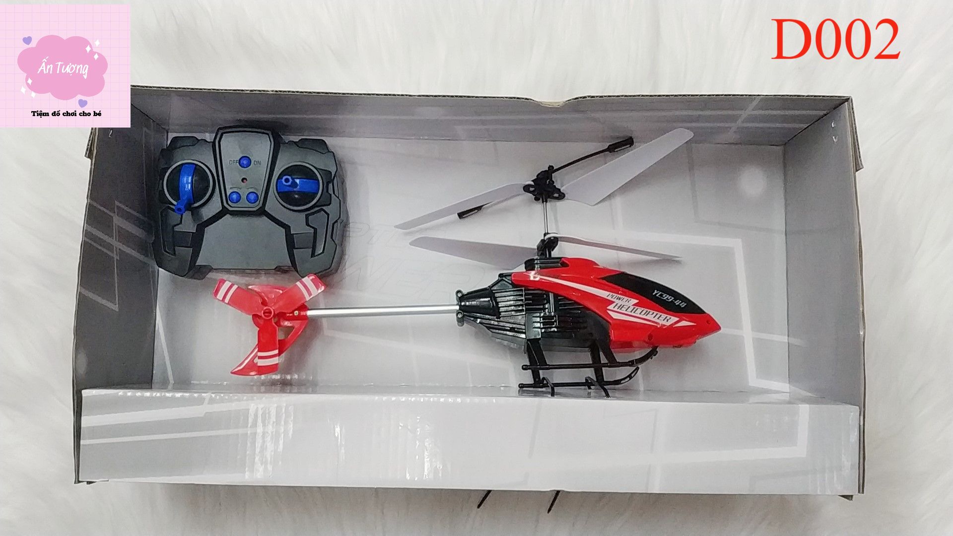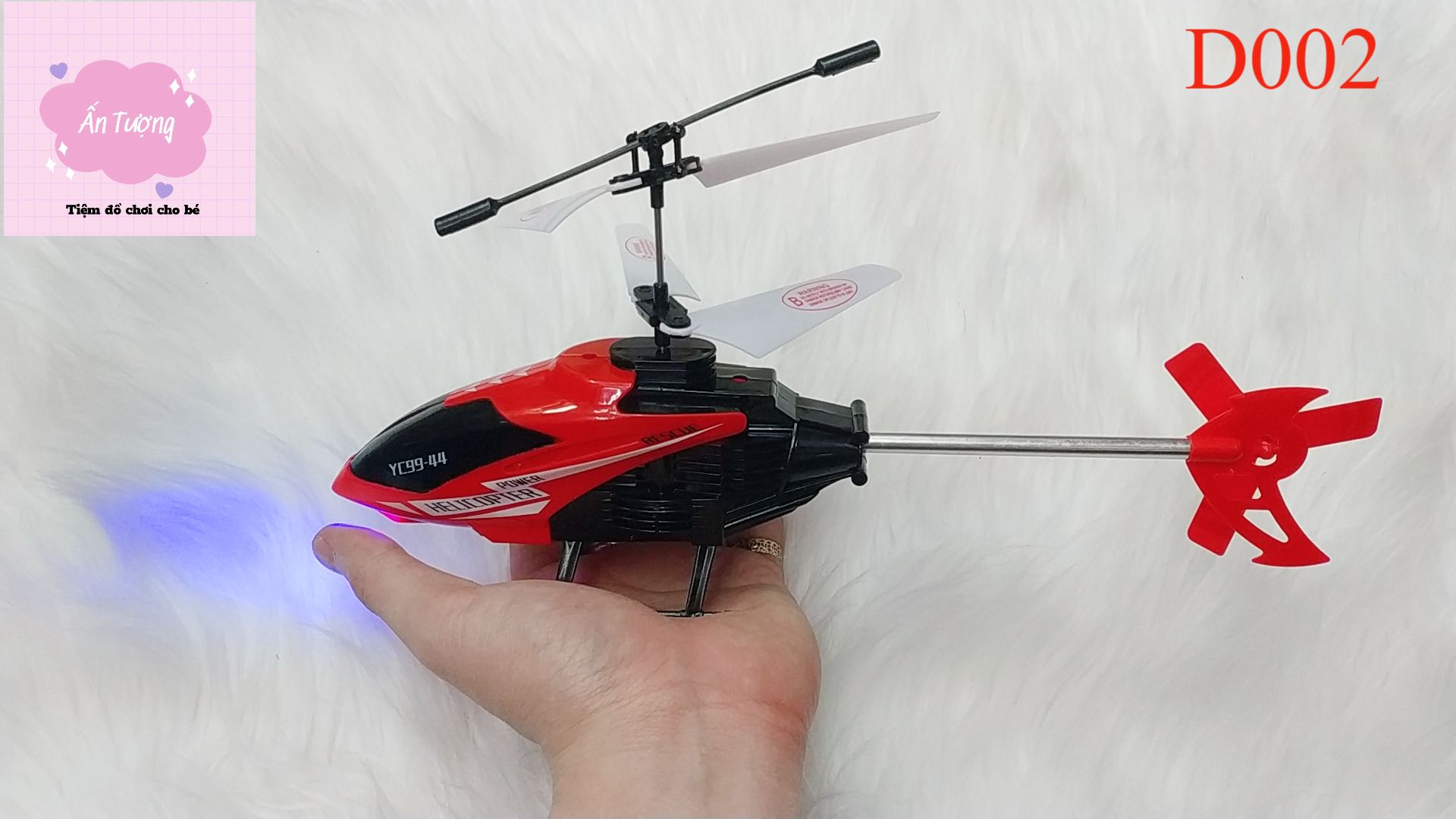 Trực thăng có thể điều khiển đi lên và xuống, tiến về trước và lùi, rẽ phải và trái, thích hợp chơi trong nhà và ngoài trời, Pin được sạc đầy qua dây sạc USB đi kèm.