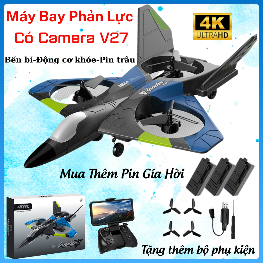 Máy bay điều khiển từ xa V27 có camera kèm pin Pro size 39cm chất liệu xốp EPP cao cấp chống va đập mạnh, Flycam mini giá rẻ, máy bay đồ chơi xốp model, bản nâng cấp hơn V17