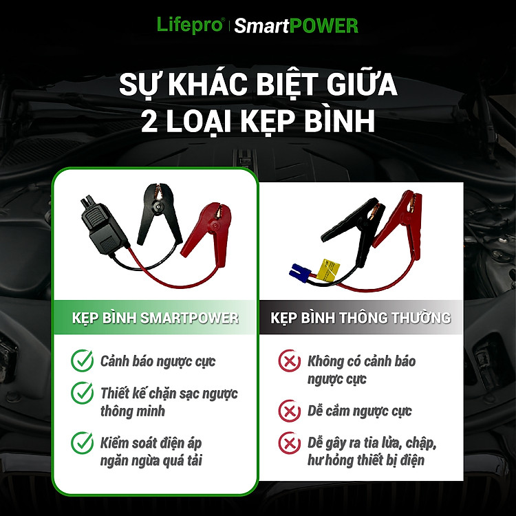 Kích bình ắc quy nhanh chóng với dòng xả lên tới 2000A