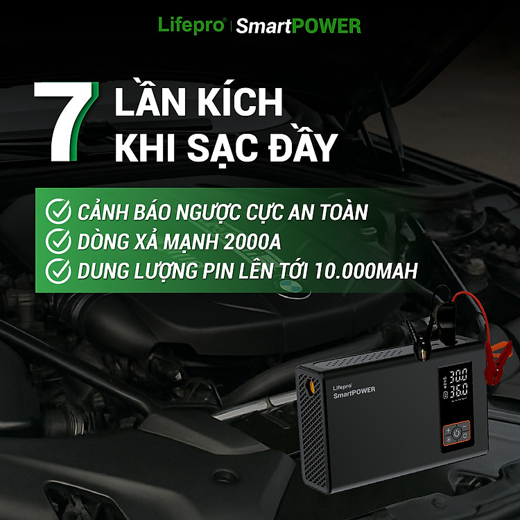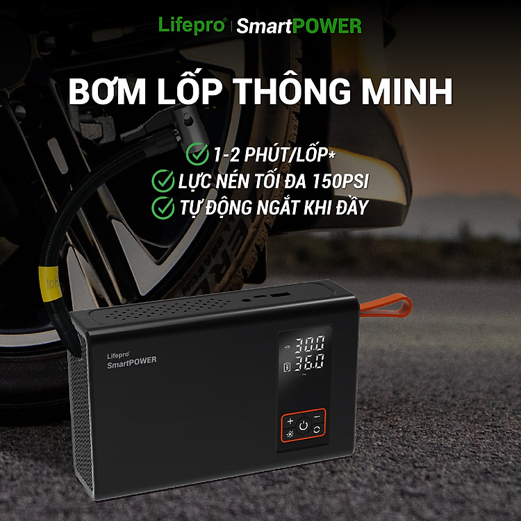 Giới thiệu Máy bơm lốp ô tô kèm kích bình đa năng Lifepro SmartPOWER Hàng chính hãng