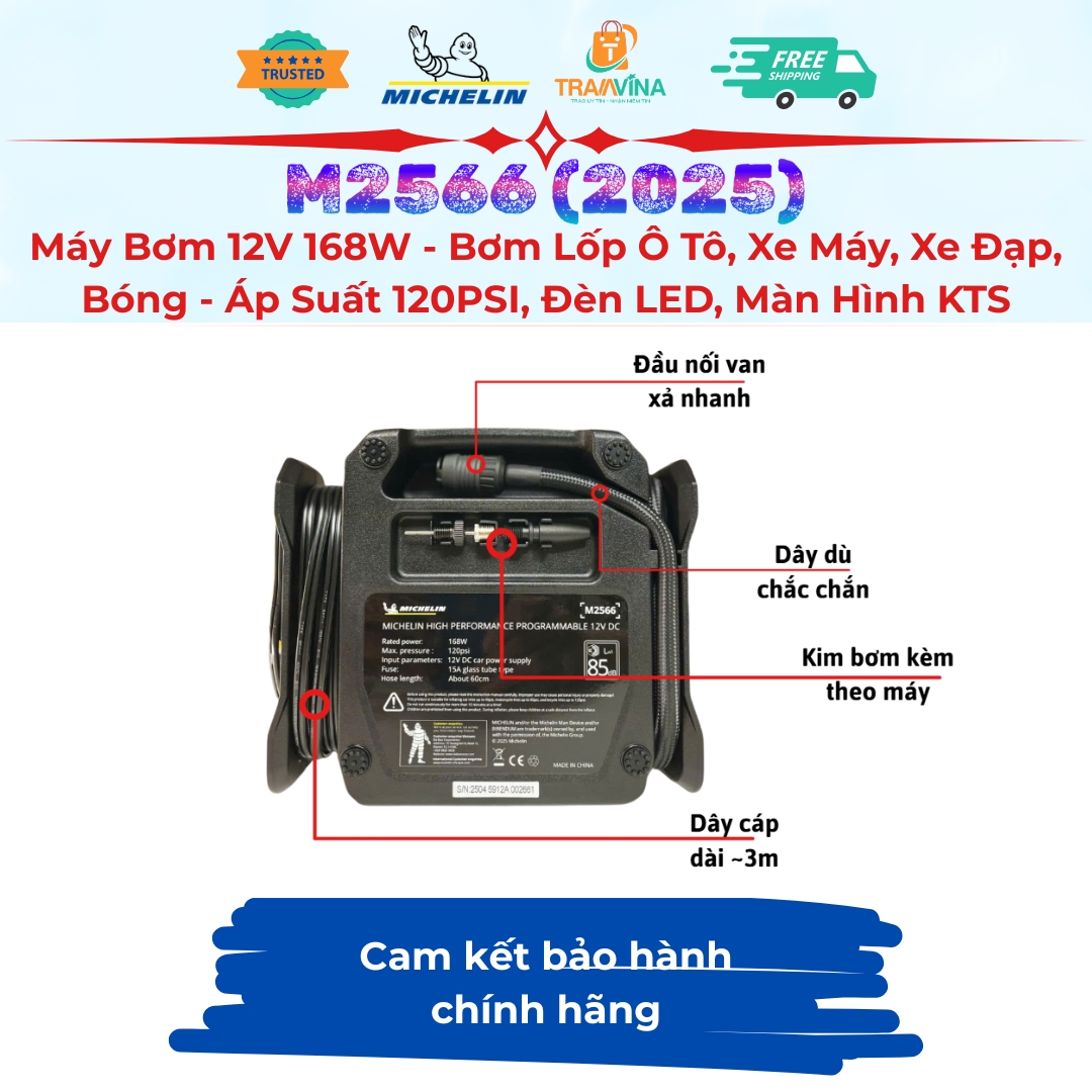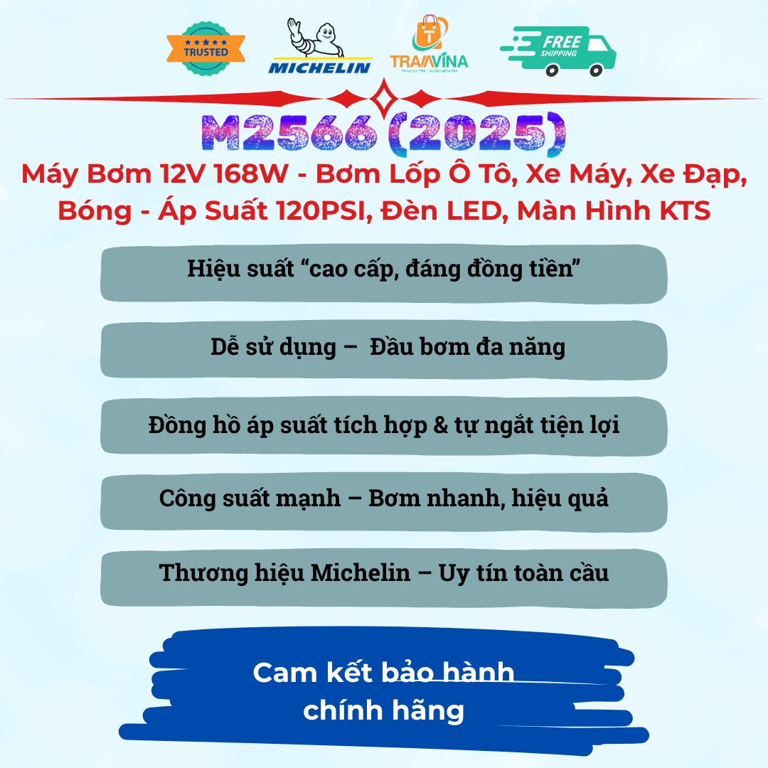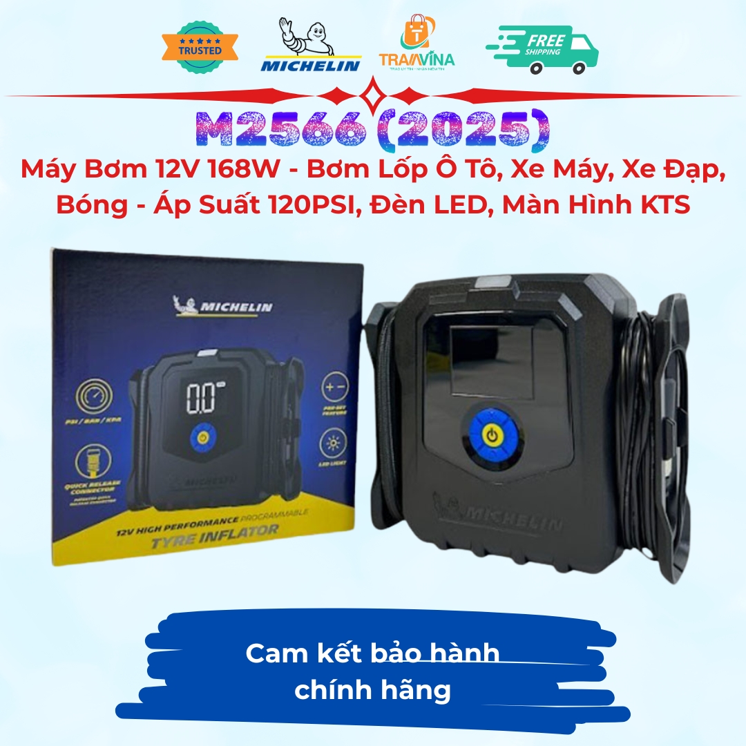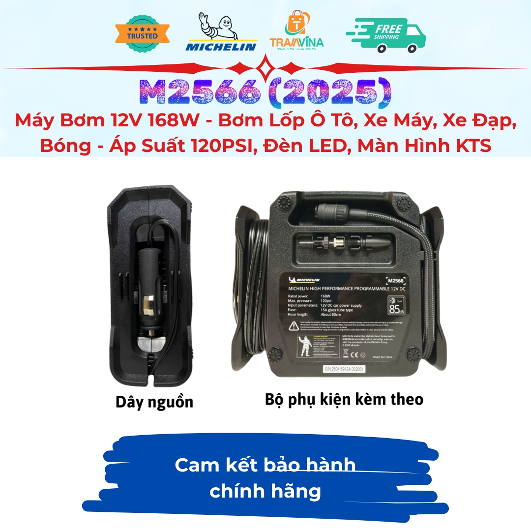 Máy bơm lốp ô tô, xe máy, xe đạp, phao bơi Michelin M2566 (Phiên bản 2025) - 12V - 168W - Hàng chính hãng
