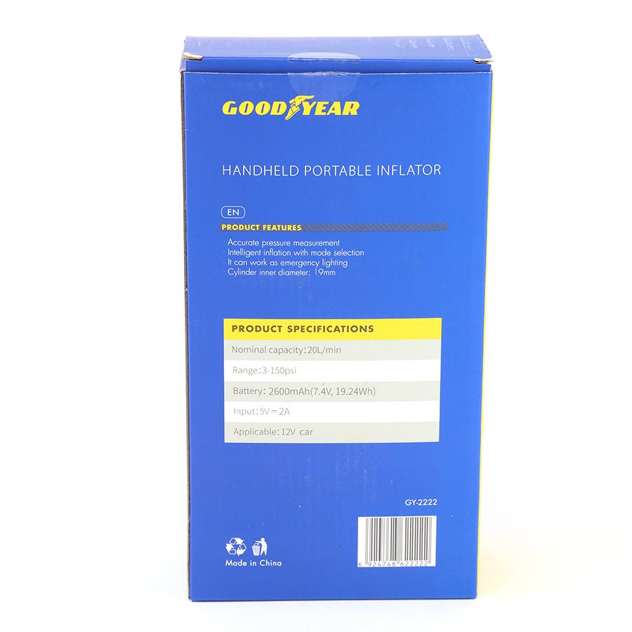 Máy Bơm Lốp Xe GOODYEAR GY-2222 Cầm Tay Nhỏ Gọn Không Dây Tích Điện