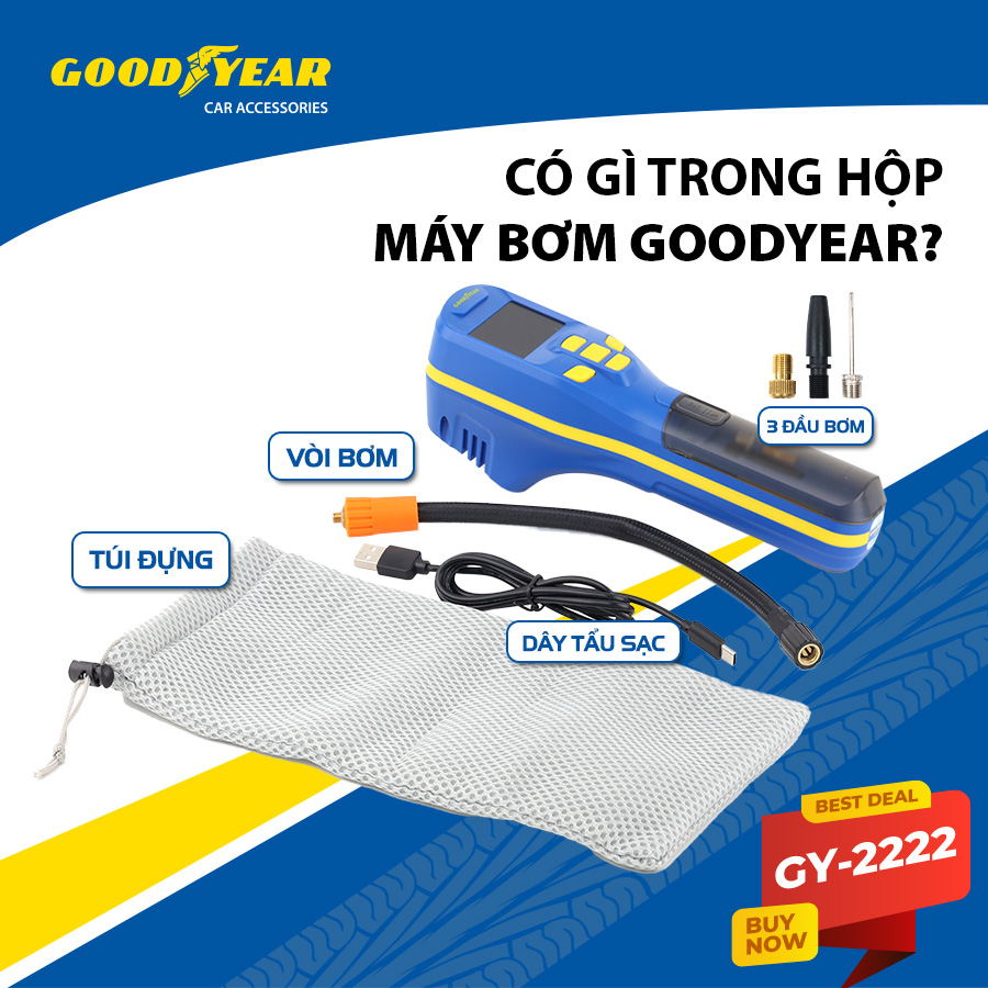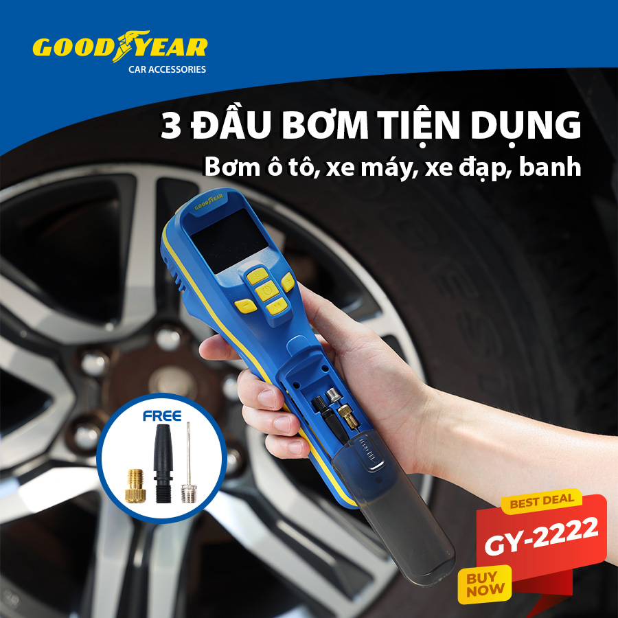Máy Bơm Lốp Xe GOODYEAR GY-2222 Cầm Tay Nhỏ Gọn Không Dây Tích Điện