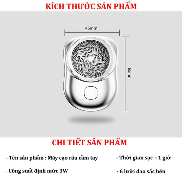 Bộ sản phẩm gồm: Máy cạo râu điện mini cầm tay 6 lưỡi dao kép chống nước IPX7