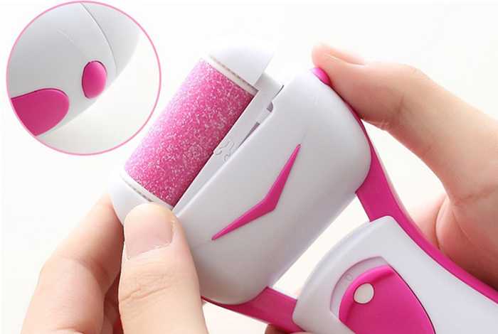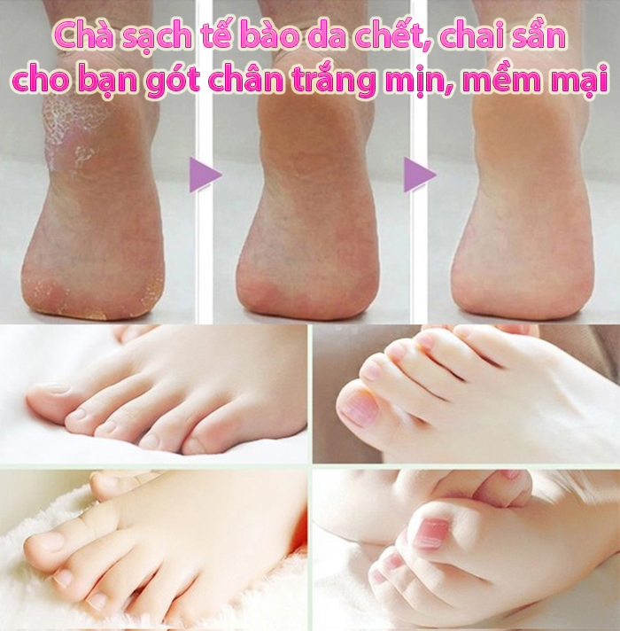 Mài mòn lớp tế bào chết ở gót chân, giúp da chân bạn trở nên mịn màng. Nếu ở sản phẩm khác thì dùng lưỡi dao kim loại để loại bỏ tế bào chết nhưng ở sản phẩm này ống chà được làm từ chất liệu HIPS (High Impact Polystylene) quay 360 độ, nhẹ nhàng mài lớp da chết đó vừa an toàn cho da mà lại rất hiệu quả (lớp da chết sẽ bị mài dần dần cho đến khi hết hẳn--> lớp da bị mài mịn như bột mì).