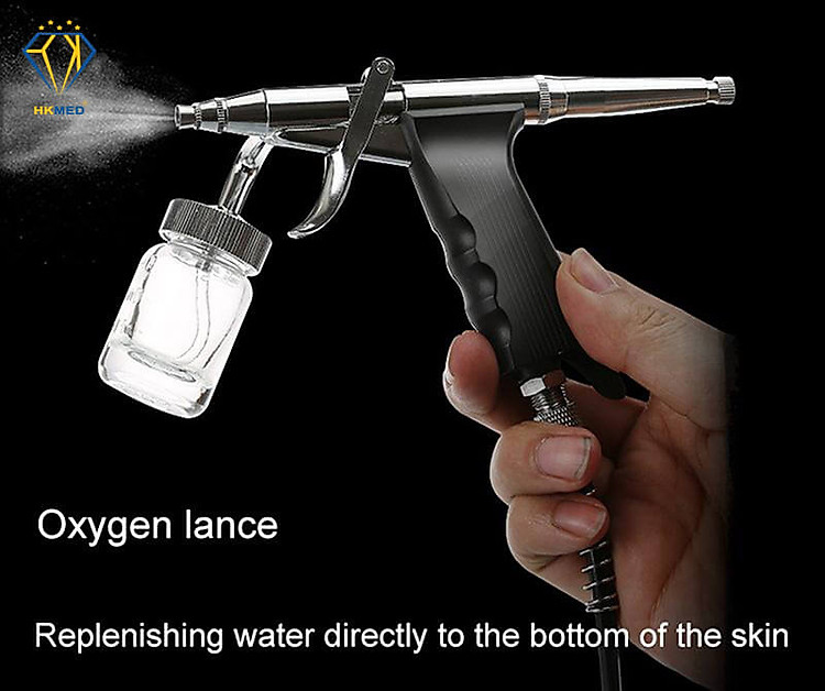 1 Tay cầm Hydrad phun Oxy + Dưỡng chất: sử dụng bất kì dung dịch nào để kết hợp với Oxygen tinh khiết để đưa vào da. Nước cất thường được sử dụng trong liệu trình điều trị mụn.
