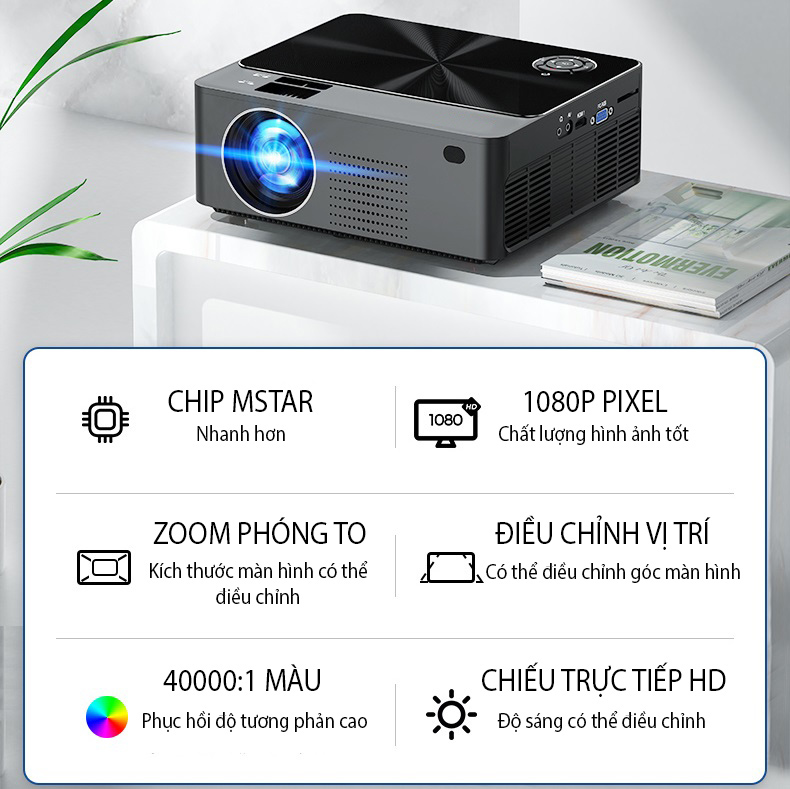Máy chiếu được tích hợp sẵn hệ điều hành Android 6.0 tích hợp YouTube, Netflix, Google Play Store,…