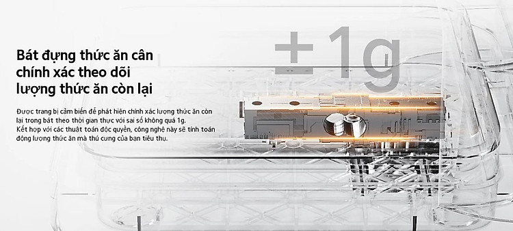 Màn hình LED độ nét cao gắn ở phía trước hiển thị trọng lượng thực phẩm trong bát theo thời gian thực. Xem trạng thái của bộ nạp chỉ bằng một cái nhìn.