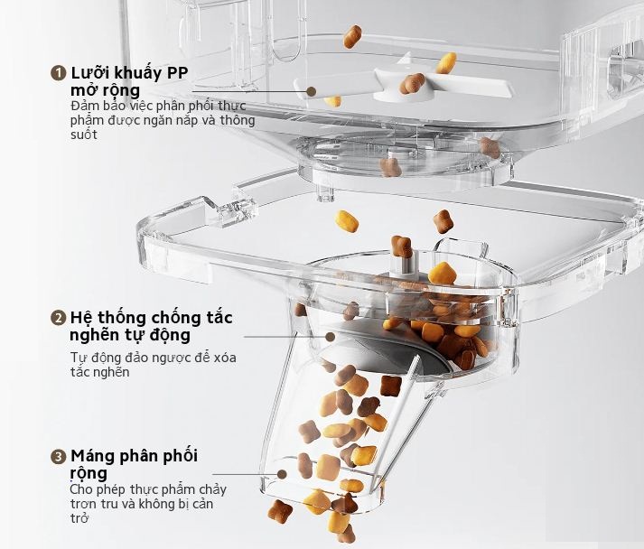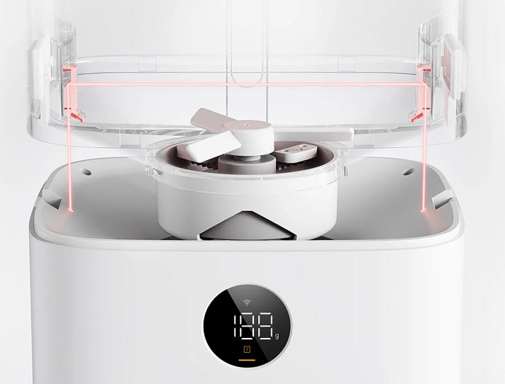 Cảm biến hồng ngoại tích hợp liên tục theo dõi lượng thực phẩm còn lại, cảnh báo bạn ngay lập tức thông qua màn hình LED lớn và ứng dụng Xiaomi Home khi lượng thực phẩm sắp hết.