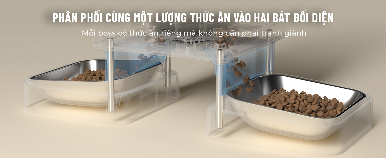 *Hai khay đựng thức ăn độc lập phù hợp cho gia đình nhiều mèo, máy phân phối chính xác và đồng đều lượng thức ăn ở mỗi bên.Máy ghi âm 10s để ghi âm lại giọng nói của bạn và máy cho ăn sẽ phát âm thanh trước mỗi bữa ăn.