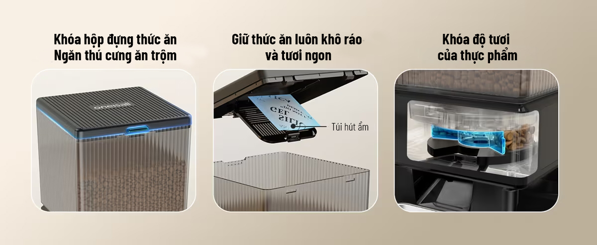 *Hộp đựng thức ăn được thiết kế đóng kín, có trang bị gói hút ẩm giúp giữ thức ăn luôn tươi ngon.