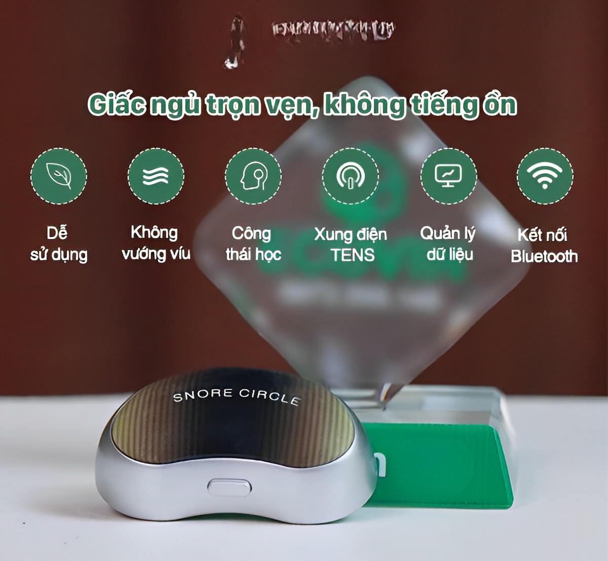 ✤ Sử dụng công nghệ TENS - Transcutaneous Electrical Nerve Stimulation - kích thích thần kinh bằng xung điện qua da, loại bỏ tiếng ngáy từ ngáy nhẹ cho tới ngáy to một cách hiệu quả.