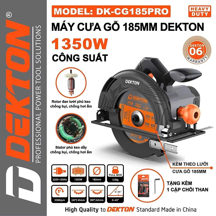 Giới thiệu MÁY CƯA GỖ 185MM 1350W DK-CG185PRO DEKTON - HÀNG CHÍNH HÃNG