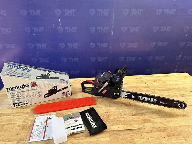 • Máy cưa xích Makute GC2301 có dung tích xi lanh lên đến 54.6cc, công suất động cơ 2600W, lam dài 20 inch.