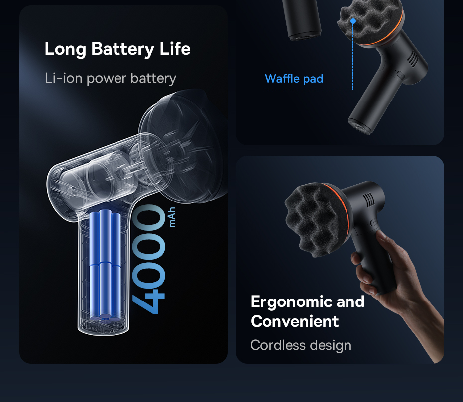 | Hướng dẫn sử dụng | của thương hiệu Baseus. Được thiết kế nhỏ gọn và không dây, máy đánh bóng xe hơi n |