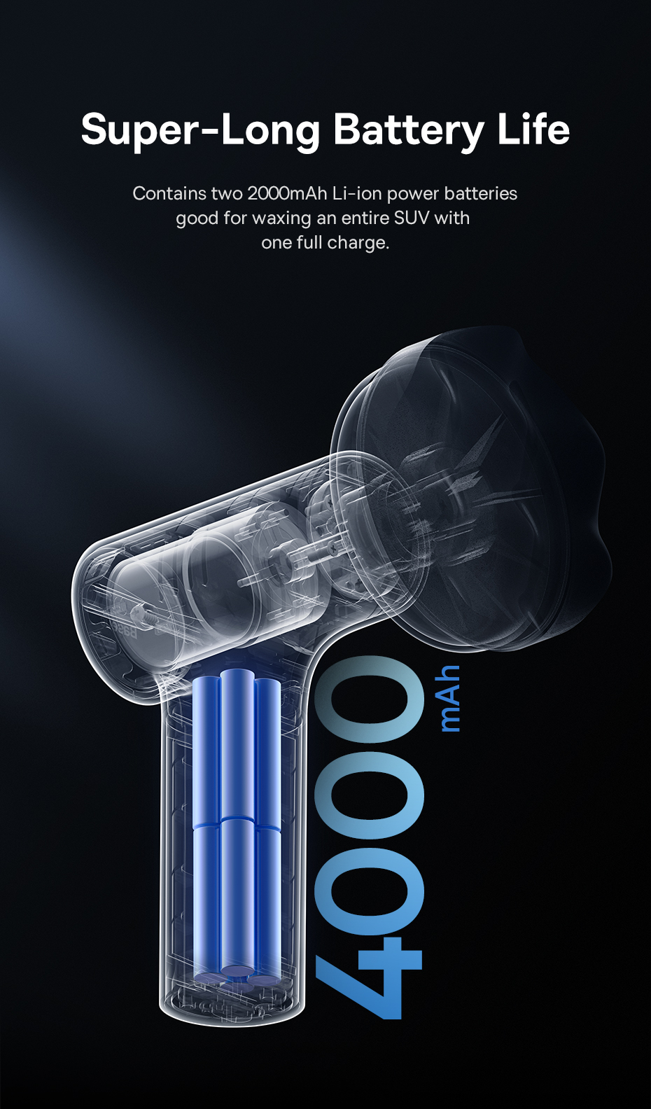 Máy Đánh Bóng Xe Hơi Baseus NeoPower Wireless Mini Car Waxer Lite có công suất 40W và tốc độ đánh bóng lên tới 3600rpm, giúp loại bỏ bụi bẩn, vết bẩn và chất bẩn một cách nhanh chóng và hiệu quả. Ngoài ra, máy còn có bộ pin sạc 4000mAh, cho phép sử dụng lên đến 30 phút một lần sạc đầy.