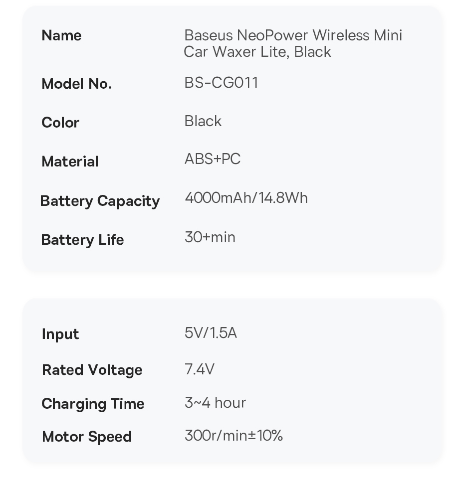 | Tên | Máy Đánh Bóng Xe Hơi Baseus NeoPower Wireless Mini Car Waxer Lite |