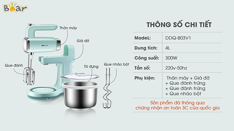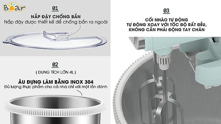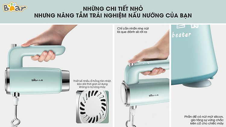 Ngoài các công năng hữu ích chính, hãng đồ điện gia dụng Bear luôn để ý đến từng chi tiết nhỏ để nâng hạn chế các khuyết điểm để trải nghiệm sử dụng luôn hoàn hảo nhất. Và với chiếc máy đánh trứng để bàn Bear DDQ-B03V1 cũng vậy.