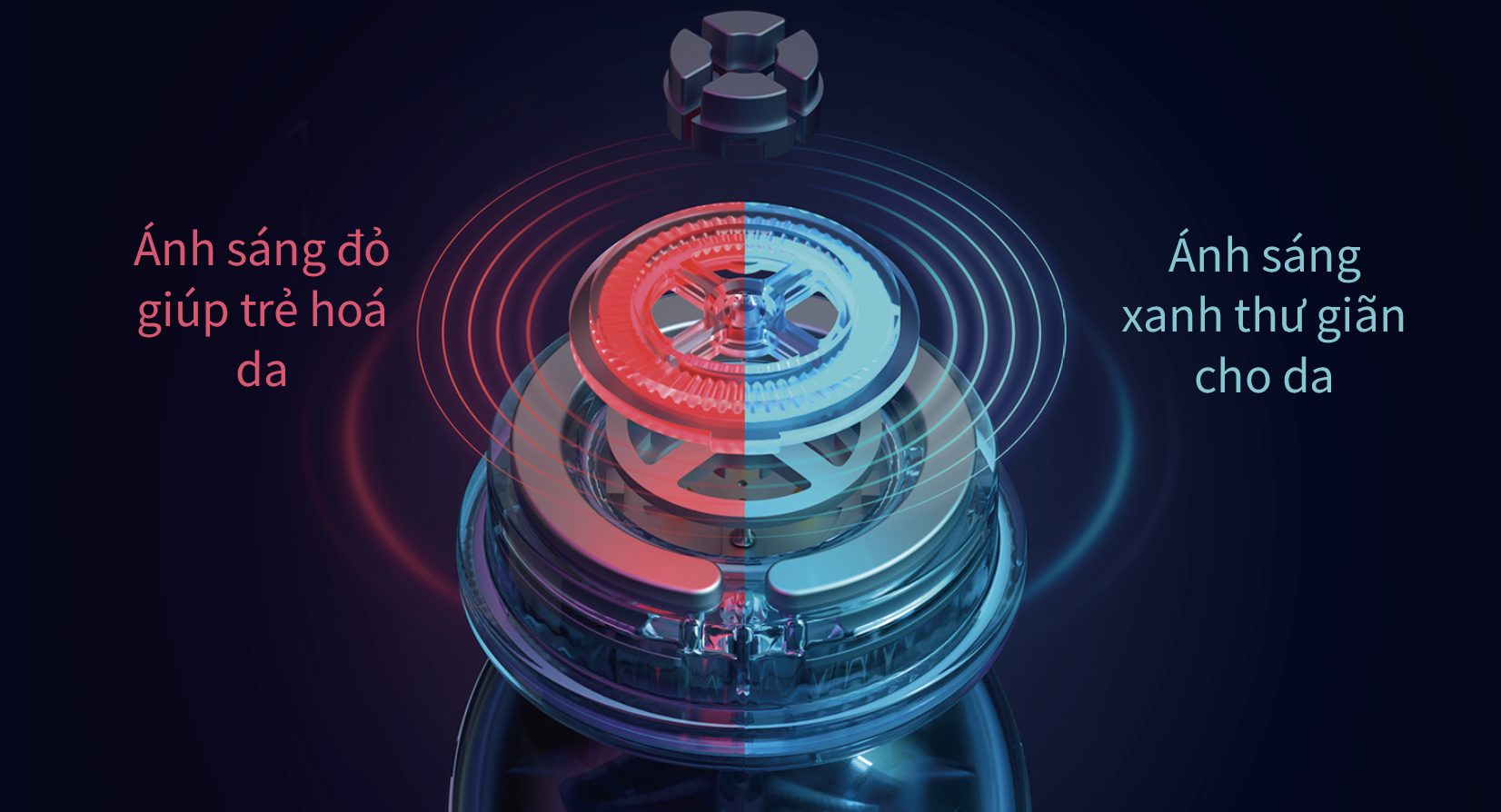 Ánh sáng đỏ 623 nm đồng bộ với các chức năng như RF, thẩm thấu ENI, nâng cơ mặt EMS, tăng cường hiệu quả trong việc trẻ hóa. làm mềm da. Ánh sáng xanh 465 nm được điều chỉnh chuyên nghiệp được chiếu lên bề mặt da, giúp hạn chế việc điều tiết dầu, ngăn chặn mụn tái phát.