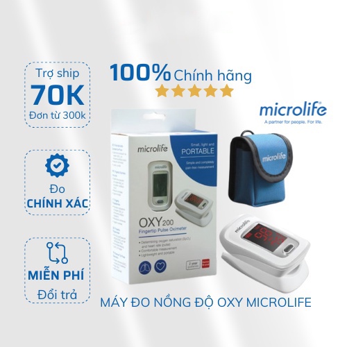 Máy đo nồng độ oxi trong máu MICROLIFE OXY 200 Thương hiệu: Microlife - Thụy Sĩ *Sản xuất tại Trung Quốc ------------------------------------- TÍNH NĂNG NỔI BẬT - Máy đo nồng độ oxy trong máu được dùng để đo nồng độ oxy trong máu và nhịp tim của cả người lớn và bệnh nhi. - Thiết bị rất cần thiết cho những phòng khám, bệnh viện hay bệnh nhân được bác sĩ chỉ định dùng máy đo nồng độ oxy trong máu tại nhà.