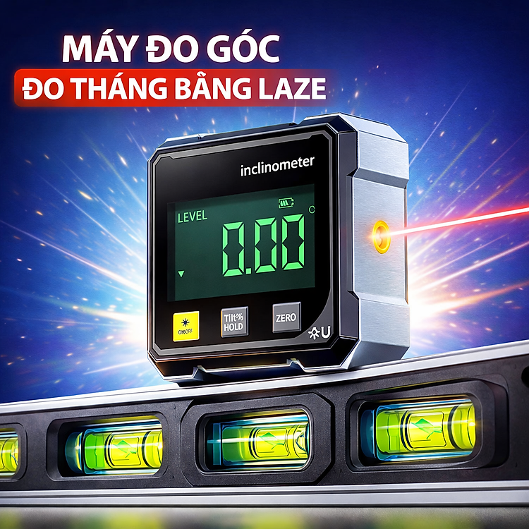 Đo thăng bằng chính xác cao: Cảm biến đo góc nhạy, hiển thị kết quả rõ ràng, hạn chế sai số khi làm việc.