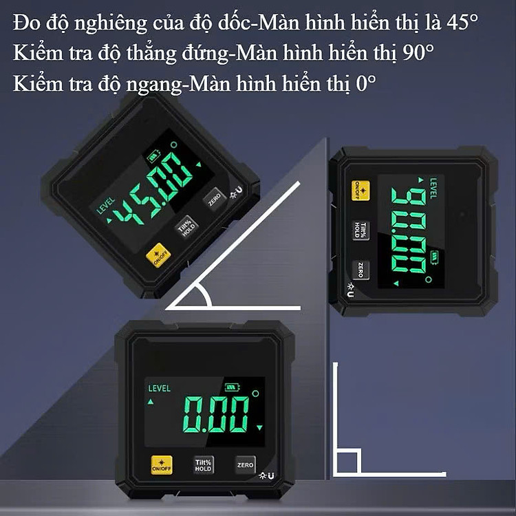 Màn hình LED sắc nét: Hiển thị độ nghiêng, góc đo rõ ràng kể cả trong môi trường thiếu sáng.