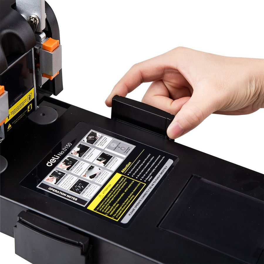 - Máy đục lỗ Deli - E0150 được làm bằng chất liệu cao cấp SPCC chống gỉ + ABS siêu bền.