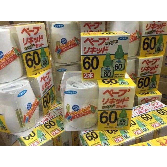 Máy đuổi muỗi tinh dầu an toàn ( Hàng chuẩn Nhật ) Máy đuổi muỗi Nhật Bản, cục đổi nguồn, tinh dầu đuổi muỗi Nhật 1 bộ máy đầy đủ bao gồm: 1 máy + 1 lọ tinh dầu + Cục đổi nguồn Trung Quốc (mua riêng) Khi cần mua thêm tinh dầu, đổi nguồn shop có bán thêm. Vui lòng ấn vào nút "Mua ngay", chọn "Phân loại hàng" để xem giá bán từng loại và đặt hàng. Đây là dòng máy đuổi muỗi được nhiều gia đình sử dụng, gọn nhẹ, dễ dùng và tác dụng thực sự. 99% sau khi dùng máy không còn bóng dáng của muỗi.