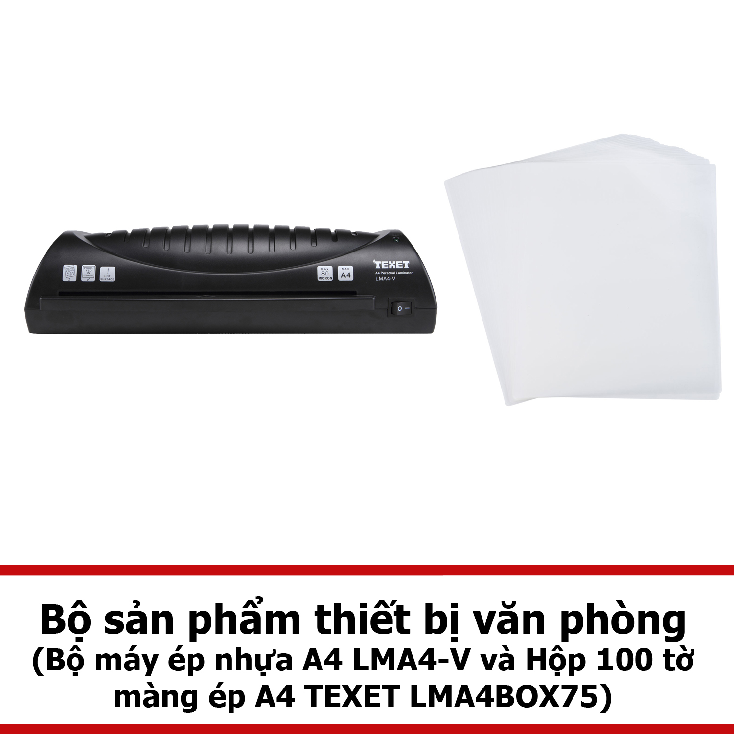 Với Bộ máy ép nhựa A4 LMA4-V và Hộp 100 tờ màng ép nhựa A4 TEXET LMA4BOX75 bạn vừa có thể tiết kiệm được nhiều thời gian hơn cho những công việc khác‚ vừa có thể an tâm về hiệu quả mà sản phẩm này mang lại.
