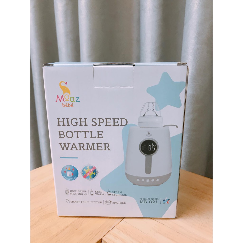 ➖ Máy hâm sữa siêu tốc Moaz Bébé MB-021 có thân máy được cấu tạo từ nhựa PP cao cấp, không chứa BPA, được cấp phép sử dụng và an toàn tuyệt đối với sức khỏe của trẻ em. ➖ Máy hâm sữa Moaz Bébé có mâm nhiệt tráng Teflon tăng độ bền, giúp giảm thiểu nguy cơ chập điện, chống bám cặn và trầy xước, vệ sinh dễ dàng và nhanh chóng, đồng thời tiết kiệm điện năng tiêu thụ. ➖ Máy hâm sữa siêu tốc Moaz Bébé MB-021 kết hợp 2 tính năng: hâm nóng và tiệt trùng. Với sự đa năng này, mẹ vừa tiết kiệm chi phí, lại không mất quá nhiều thời gian để chuẩn bị một bữa ăn cho bé. ➖ Chức năng hâm nóng siêu tốc của máy giúp hâm sữa từ ngăn mát tủ lạnh (tương ứng 4 độ C) lên 37 độ C chỉ trong 3 phút. ➖ Máy kết hợp thêm chức năng giữ ấm liên tục. Vì vậy, nếu sau khi hâm mà bé chưa muốn ăn hoặc mẹ cần chế biến thêm món khác thì có thể sử dụng tính năng này để giữ cho nhiệt độ thức ăn luôn ở mức nóng ổn định, đảm bảo dinh dưỡng và thơm ngon khi bé dùng bữa. ➖ Chức năng tiệt trùng hơi nước giúp làm sạch bình, tiêu diệt vi khuẩn an toàn trước và sau khi ➖ Máy hâm sữa Moaz Bébé có khoang hâm rộng, sử dụng được cho tất cả các loại bình sữa. ➖Phím cảm ứng dễ sử dụng, màn hình LED sang trọng, dễ dàng quan sát.