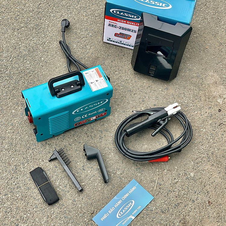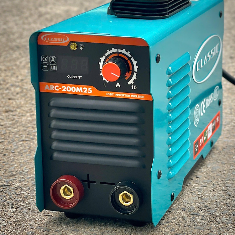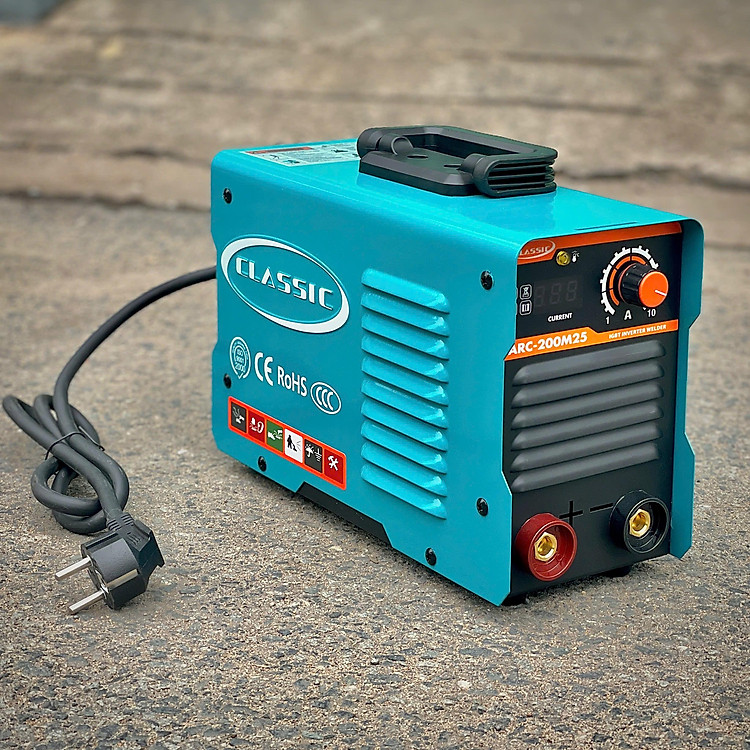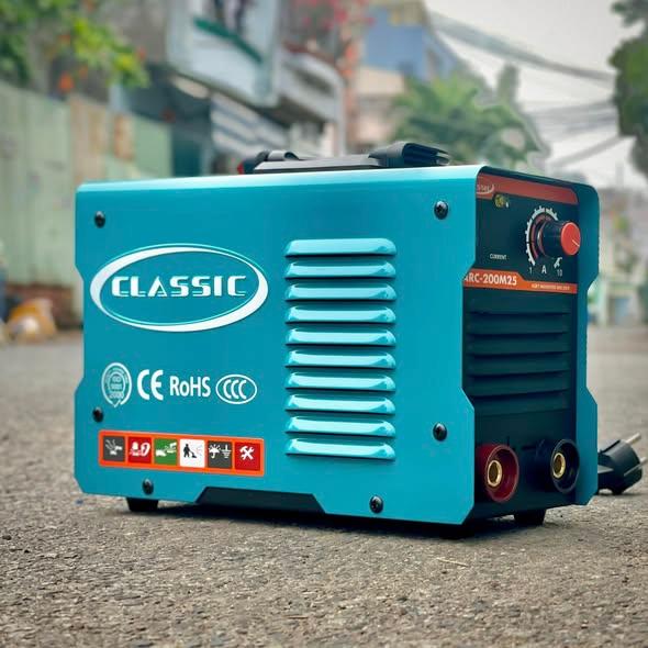 Máy Hàn Inverter CLASSIC ARC ARC-200M25 là máy hàn que công nghệ Inverter, dùng điện 1 pha, công suất mạnh mẽ, cho mối hàn đẹp, ổn định, tiết kiệm điện, thiết kế nhỏ gọn với công nghệ Nhật Bản, phù hợp nhiều ứng dụng hàn phổ thông, đặc biệt hàn que 2.5mm (li) hiệu quả, mang lại hiệu suất cao với chi phí hợp lý. Đặc điểm nổi bật (Dựa trên thông tin tổng hợp): Công nghệ Inverter: Tiết kiệm điện năng hơn máy hàn truyền thống, dòng hàn ổn định. Thương hiệu Classic: Thương hiệu Nhật Bản, sản xuất theo công nghệ hiện đại, đạt tiêu chuẩn chất lượng Nhật Bản, độ bền cao. Hiệu suất: Công suất mạnh, cho mối hàn đều, đẹp, mịn. Ứng dụng: Phù hợp hàn que 2.5mm (li), thích hợp cho thợ chuyên nghiệp và gia đình, công trình nhỏ. Thiết kế: Gọn nhẹ, dễ di chuyển, có tay cầm tiện lợi. Bảo vệ: Thường có tính năng bảo vệ quá áp, quá nhiệt, chống dính que hàn.