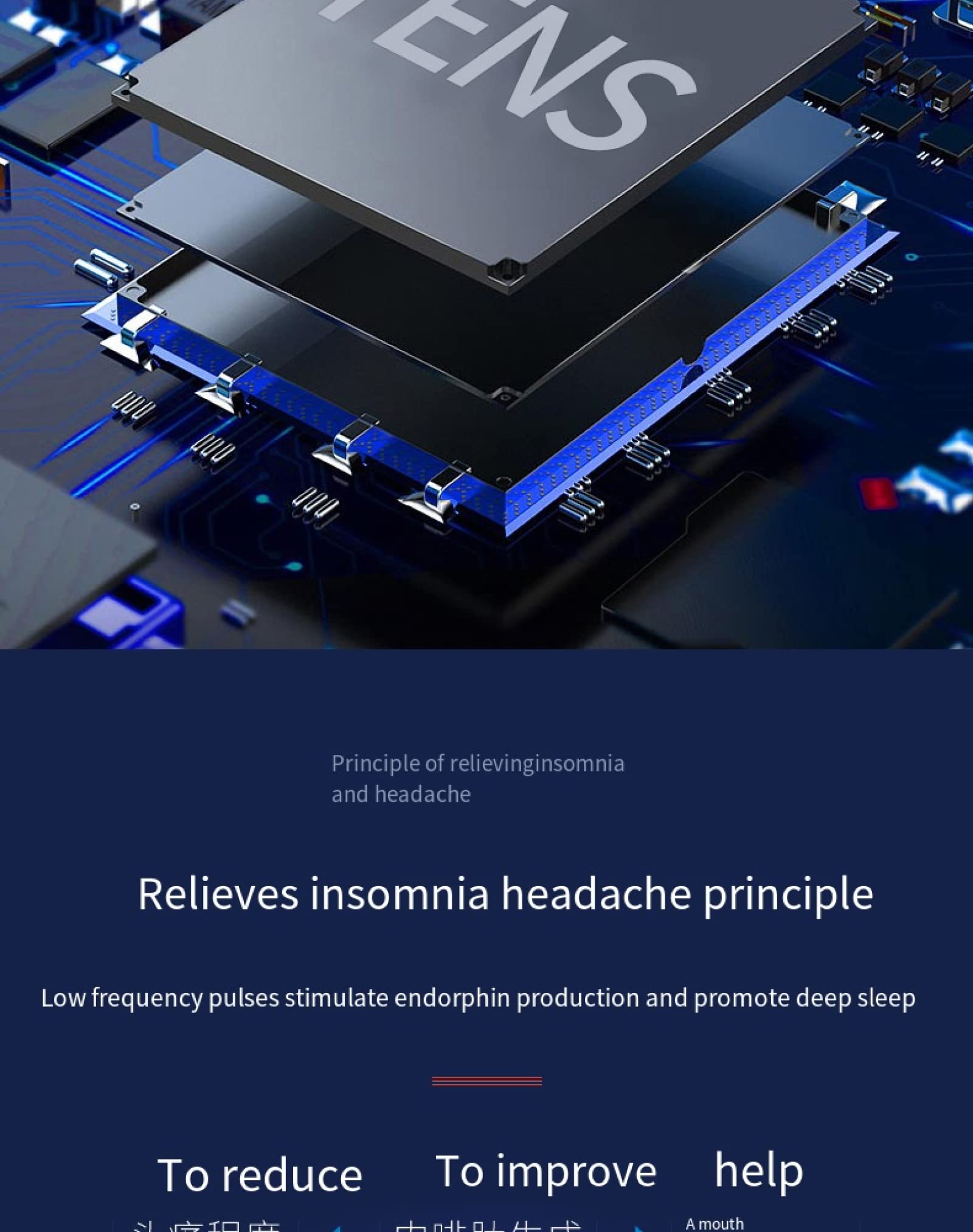 4. Điều chỉnh độc lập cường độ đầu ra của xung vật lý trị liệu. Sử dụng trước khi đi ngủ 30 phút để giảm căng thẳng và dễ đi vào giấc ngủ, từ đó cải thiện chất lượng giấc ngủ